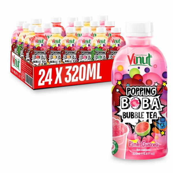 Vinut مشروب شاي فقاعات بوبينغ بوبا بنكهة الجوافة الوردية، زجاجة PET سعة 10.8 fl oz (320 mL)