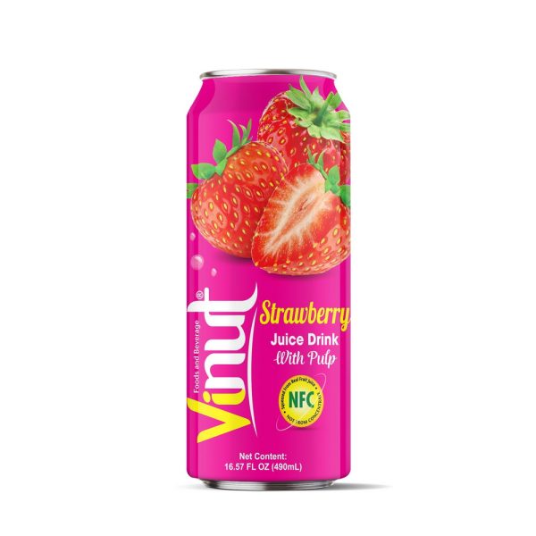Vinut مشروب عصير الفراولة مع اللب، NFC، علبة سليم 16.57 fl oz 490 mL